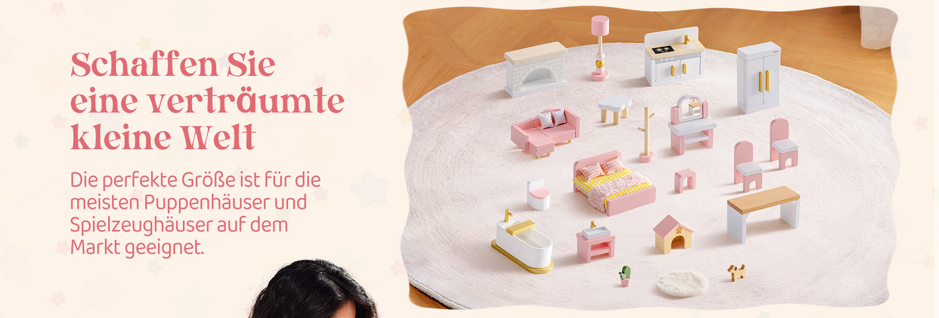 EINE TOP-WAHL FÜR GESCHENKE: ROBUD Puppenhausmöbel sind nicht nur ein außergewöhnliches Geschenk für Kinder; es ist eine herzerwärmende Wahl, die ihre Kindheit erhellt. Jedes sorgfältig gefertigte Möbelstück dient als einzigartiges und erfreuliches Geschenk, das Freude bringt und bleibende Erinnerungen schafft, sei es zu Geburtstagen, Feiertagen oder besonderen Anlässen. Das Möbelset ist in einer exquisiten bunten Box verpackt und ist das perfekte Geschenk für Ihr kleines Kind.
