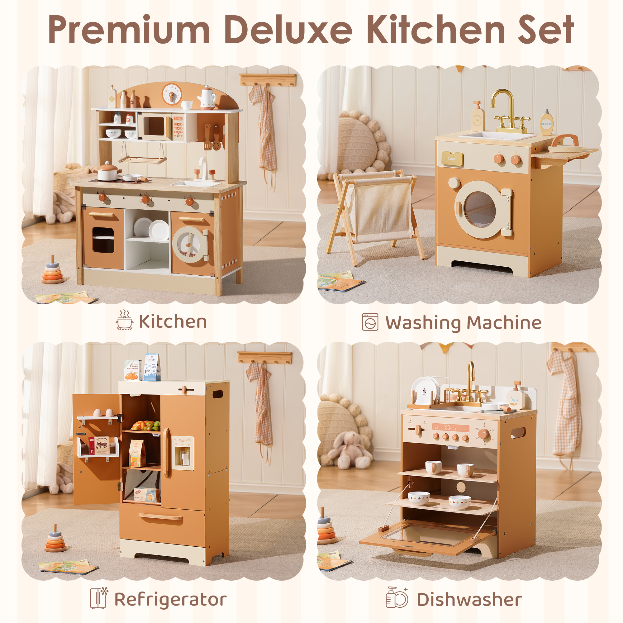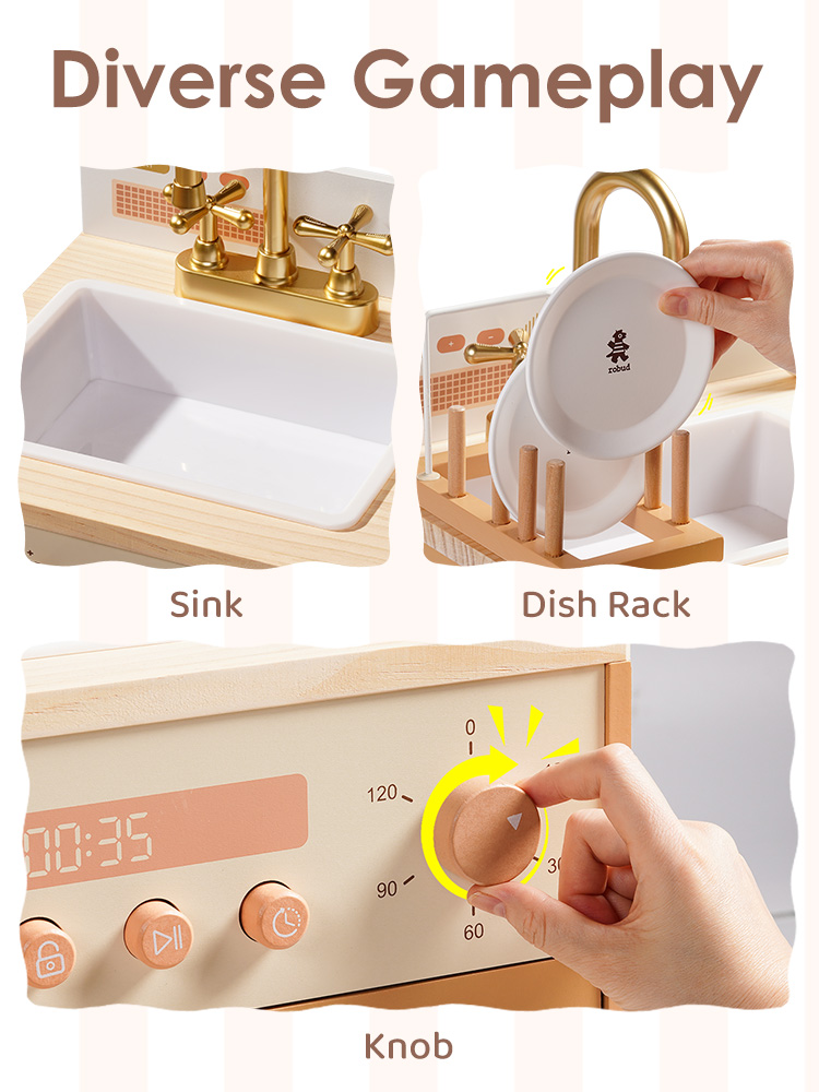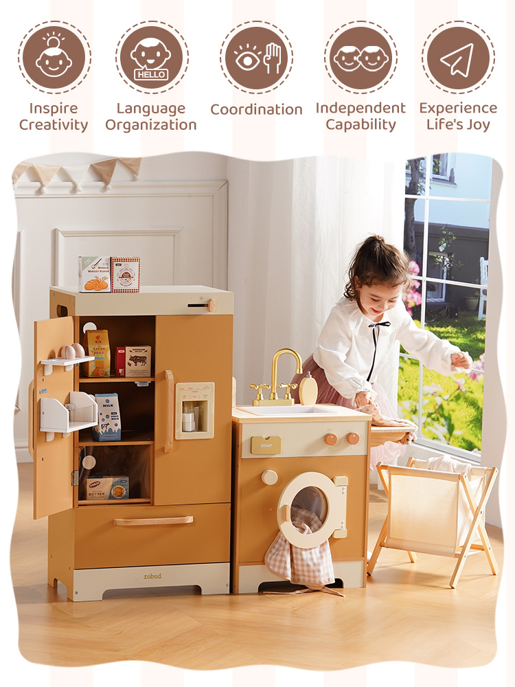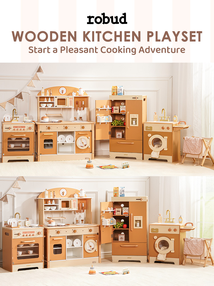 👪INTEGRIERTE ECKKÜCHE: Das ROBUD Deluxe Spielküchen-Set umfasst eine Spielküche, Geschirrspüler, Kühlschrank und Waschmaschine, die alle sorgfältig gestaltet sind, um Kindern ein umfassendes Spielerlebnis zu bieten und ihre Leidenschaft für das Leben zu entfachen.