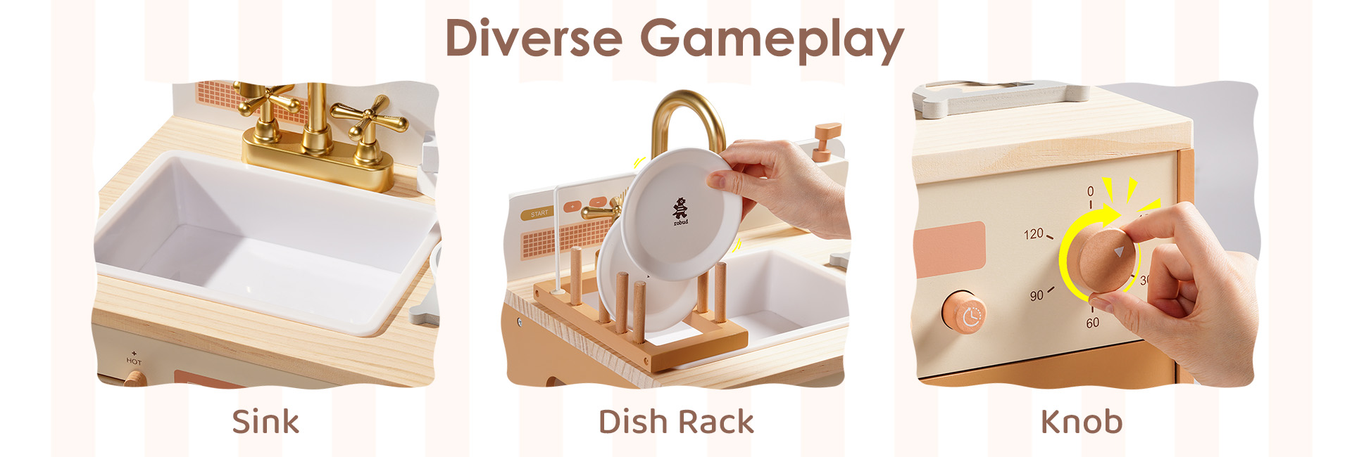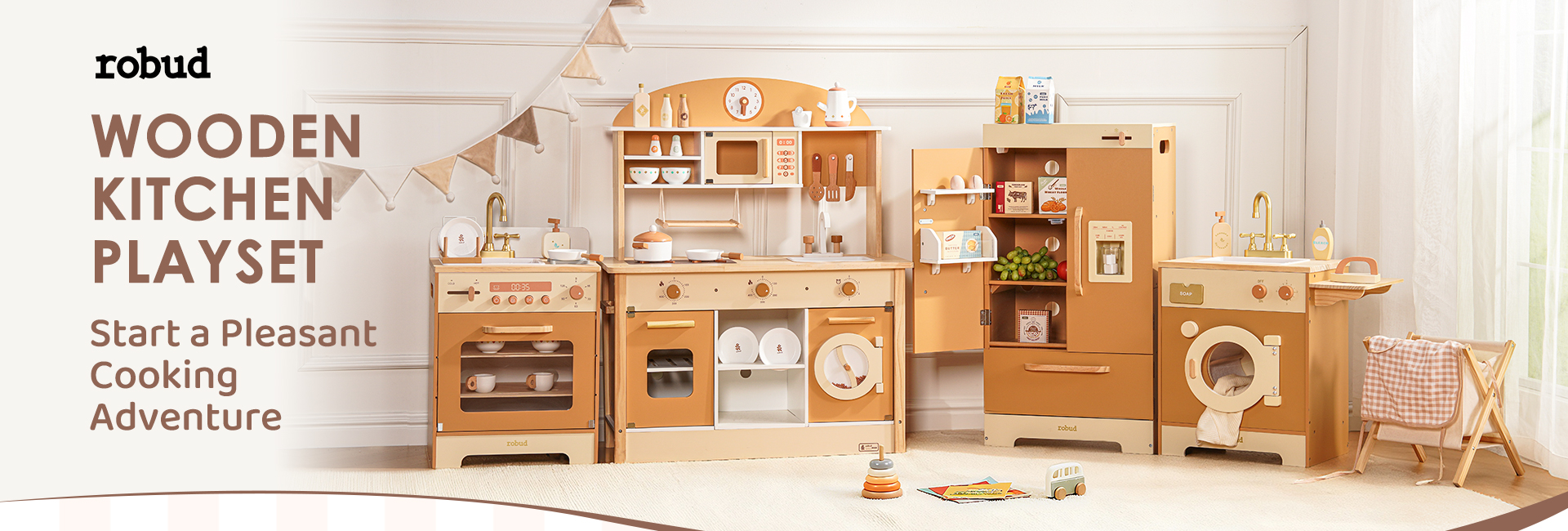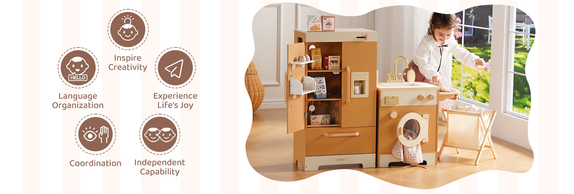 👪INTEGRIERTE ECKKÜCHE: Das ROBUD Deluxe Spielküchen-Set umfasst eine Spielküche, Geschirrspüler, Kühlschrank und Waschmaschine, die alle sorgfältig gestaltet sind, um Kindern ein umfassendes Spielerlebnis zu bieten und ihre Leidenschaft für das Leben zu entfachen.