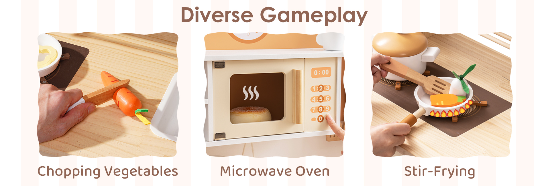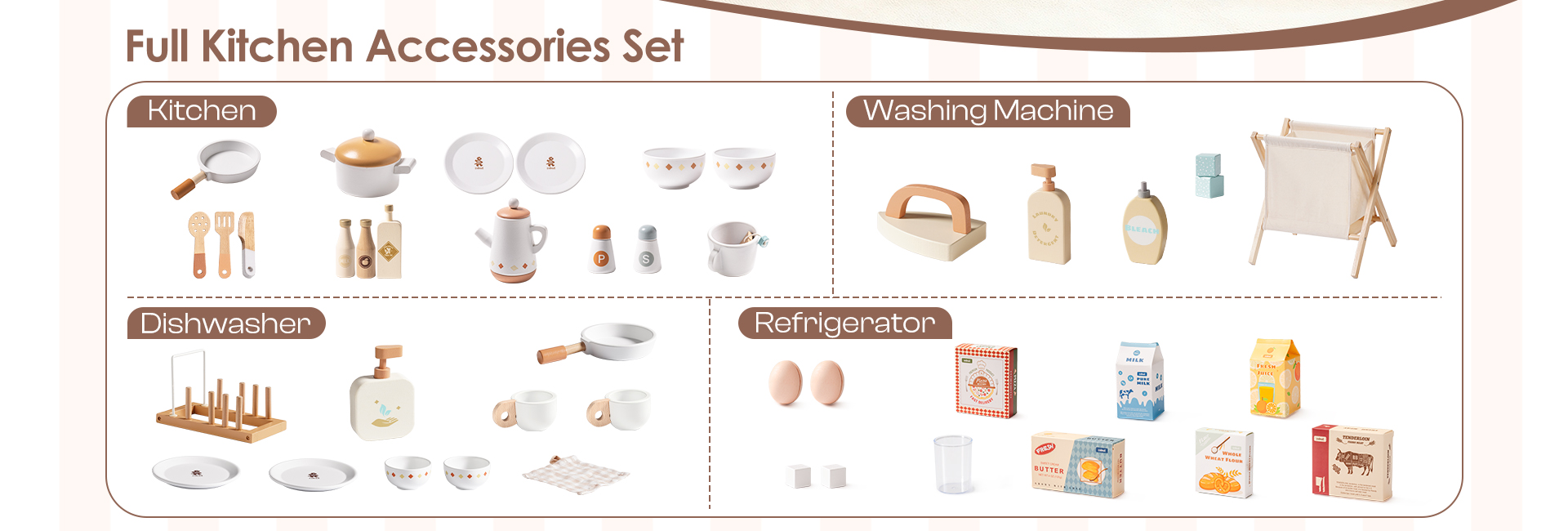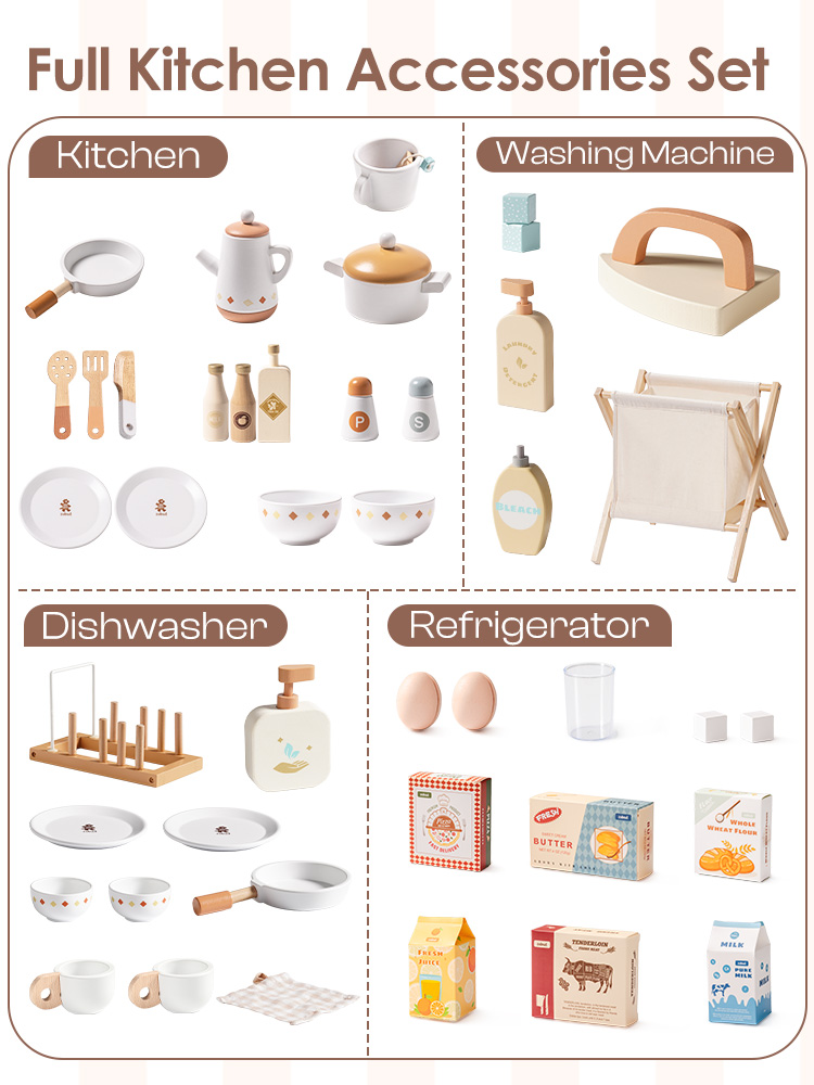 ⭐REICHHALTIGE ZUBEHÖR: Dieses Set enthält alle wesentlichen Zubehörteile für jede Art von Spielzeug, einschließlich verschiedener gängiger Werkzeuge wie Küchenutensilien, Kuchen, Pizzen, Eiscreme, Eier, Waschmittel, Wäschekorb usw., was es den Kindern erleichtert, sie zu benutzen und ihr Spielerlebnis zu verbessern. Die Zubehörteile zeichnen sich durch leuchtende Farben und glatte Oberflächen ohne Grate aus, um die Sicherheit der Kinder beim Spielen zu gewährleisten.