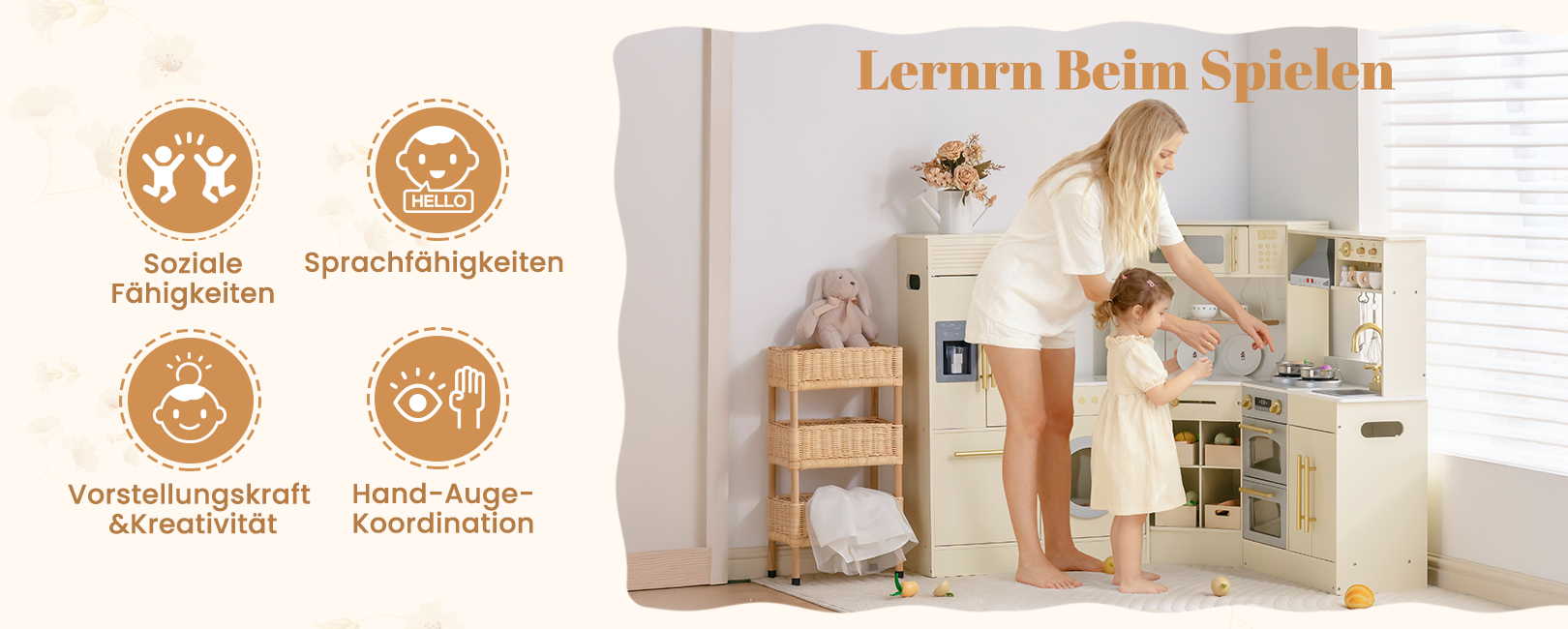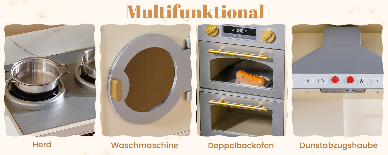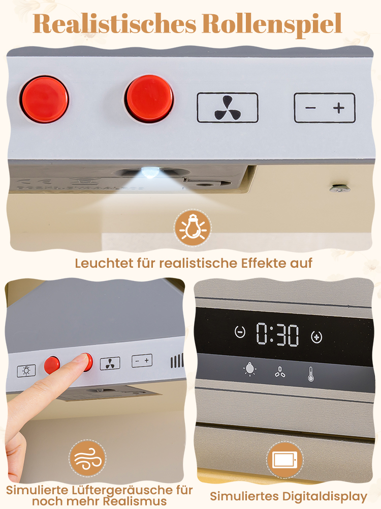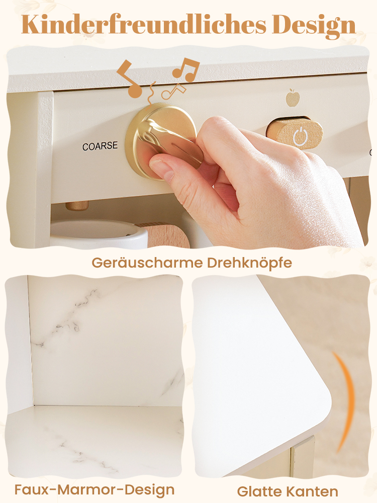 - KINDGERECHTES DESIGN UND SICHERE MATERIALIEN: Mit glatten Kanten, leicht zu greifenden Knöpfen und einer robusten Holzkonstruktion ist dieses Spielküchenset für kleine Hände konzipiert. Es unterstützt sicheres aktives Spielen und hält stundenlangen fantasievollen kulinarischen Abenteuern stand.