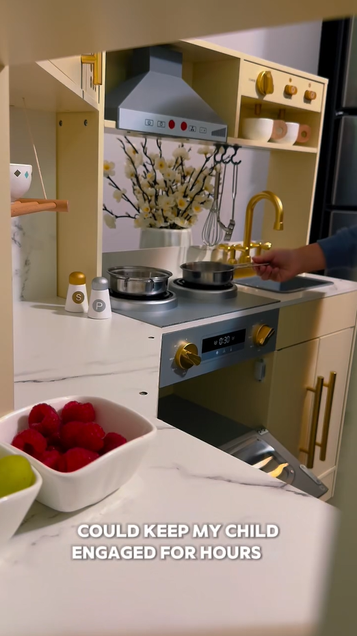 - KINDGERECHTES DESIGN UND SICHERE MATERIALIEN: Mit glatten Kanten, leicht zu greifenden Knöpfen und einer robusten Holzkonstruktion ist dieses Spielküchenset für kleine Hände konzipiert. Es unterstützt sicheres aktives Spielen und hält stundenlangen fantasievollen kulinarischen Abenteuern stand.
