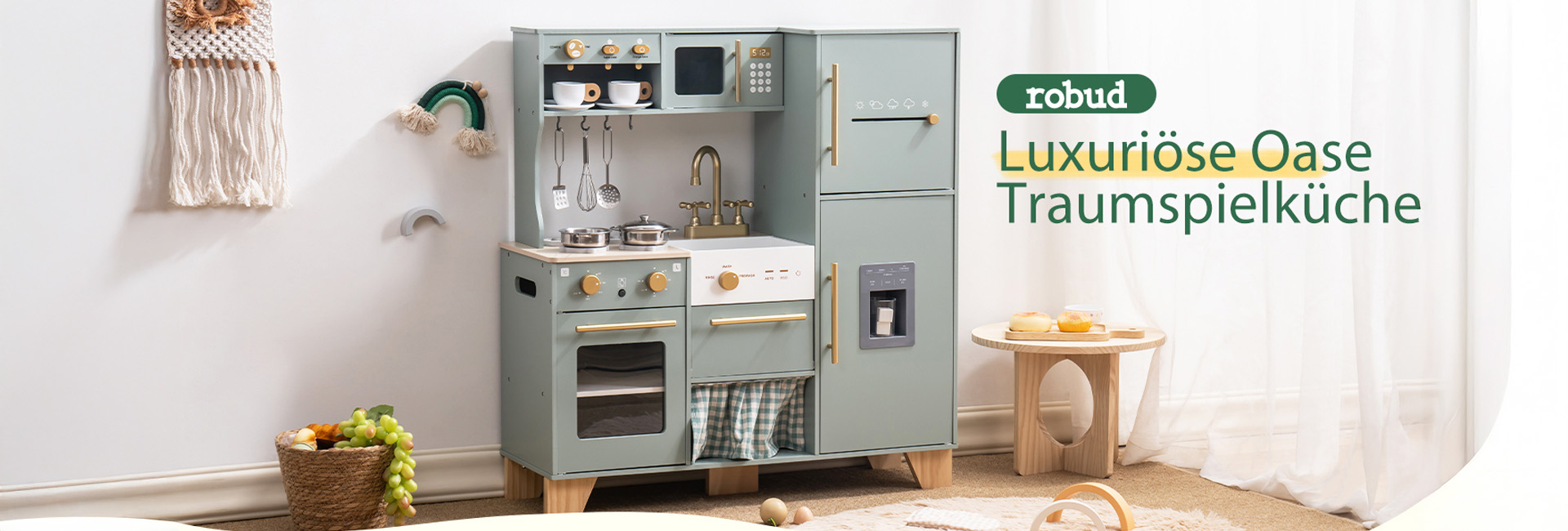 ROBUD Wooden Play Kitchen Set Bean Green