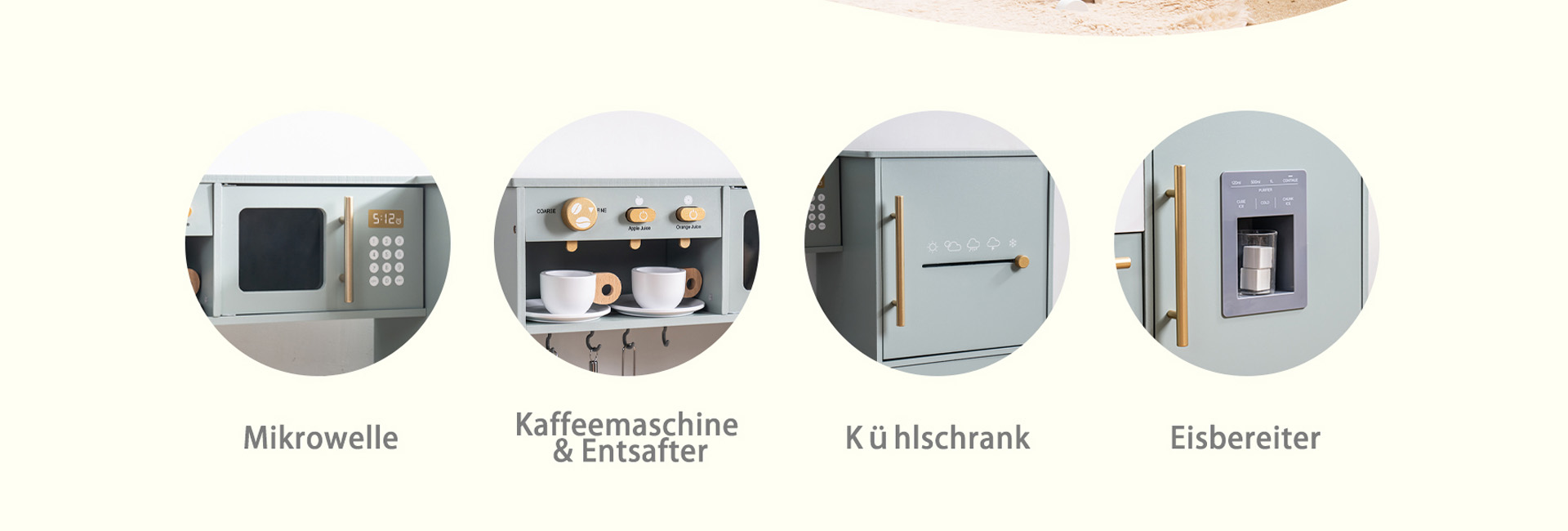 Vielfältige Funktionen: Der Kauf einer Küche öffnet die Tür zu einer Welt aufregender Möglichkeiten, einschließlich eines Kühlschranks, einer Eismaschine, einer Kaffeemaschine, einem Entsafter, einer Mikrowelle, einem Ofen, einer Geschirrspülmaschine und einer Vielzahl von Küchenutensilien und Kaffeetassen. Mit so vielen Funktionen, die es zu entdecken gilt, wird die Küche zu einem Zentrum der Kreativität und des Spaßes für Kinder!