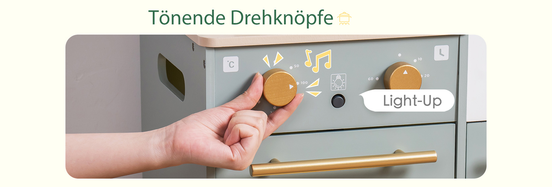 ROBUD Spielküchen-Set für Kinder aus Holz, Bohnengrün