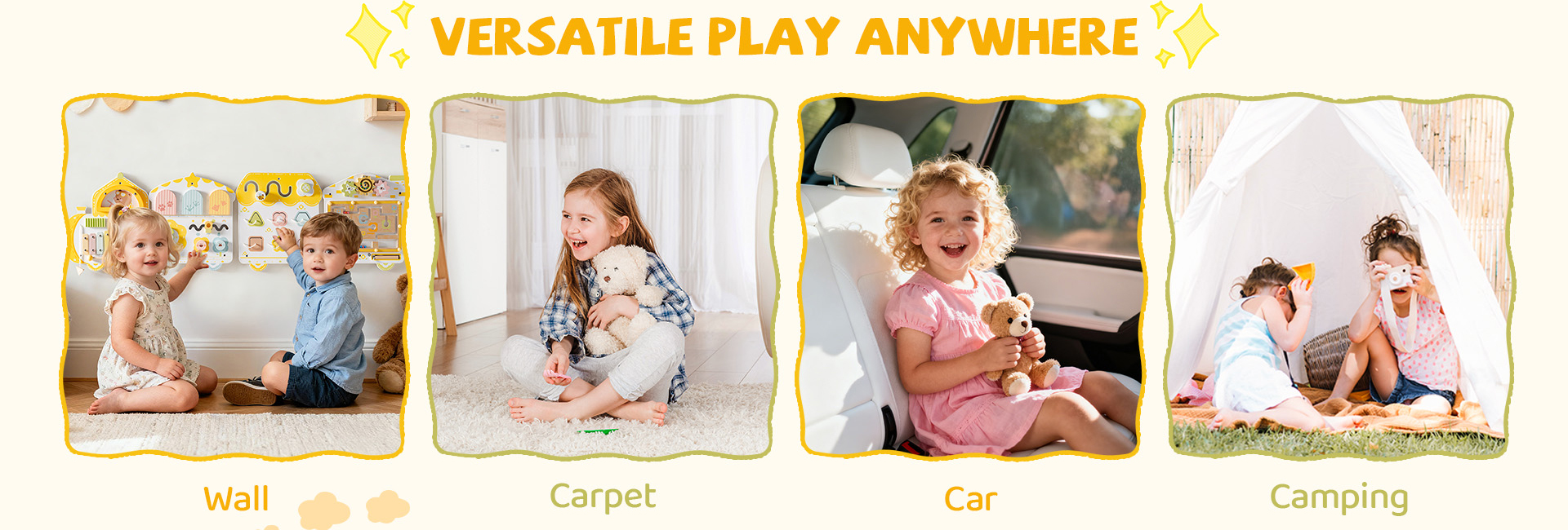 Kreativität und Problemlösungsfähigkeiten anregen - Die verschiedenen Aktivitäten auf dieser Bildungs-Spieltafel, wie das magnetische Perlenlabyrinth und die Blockzuordnung, regen das kreative Denken und die Problemlösungsfähigkeiten der Kinder an. Das drehende Perlenlabyrinth und die kreisförmigen Zahnräder helfen den Kindern auch, ihre Feinmotorik und Hand-Augen-Koordination zu entwickeln.