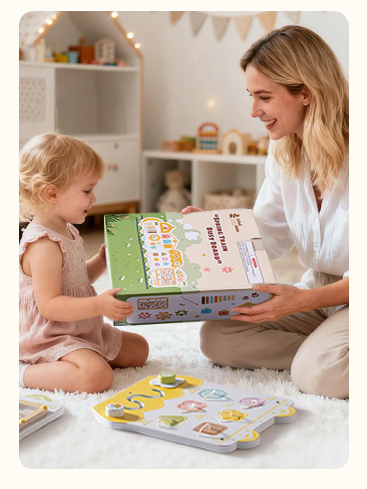 Frühling Zug Wandmontierte Bildungs-Spieltafel - Diese multifunktionale Bildungs-Spieltafel umfasst eine Vielzahl von unterhaltsamen Aktivitäten wie ein drehendes Perlenlabyrinth, Blockzuordnung, Zahnradpuzzles, ein magnetisches Perlenlabyrinth, ein Xylophon und mehr. Jede Aktivität ist darauf ausgelegt, verschiedene Aspekte der Entwicklung von Kindern zu fördern, was sie zu einem idealen Bildungswerkzeug für jeden Spielbereich macht.