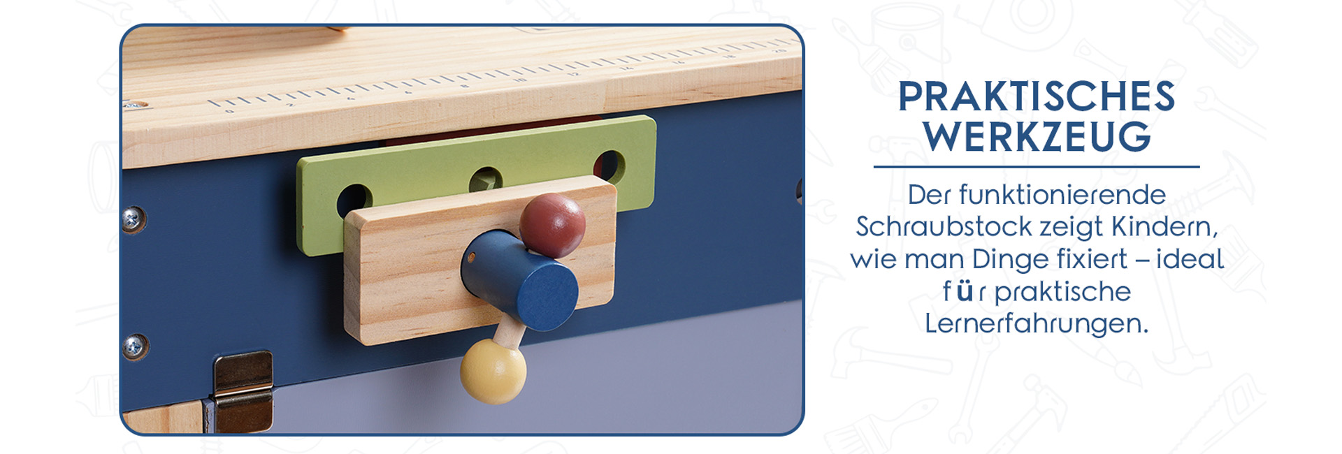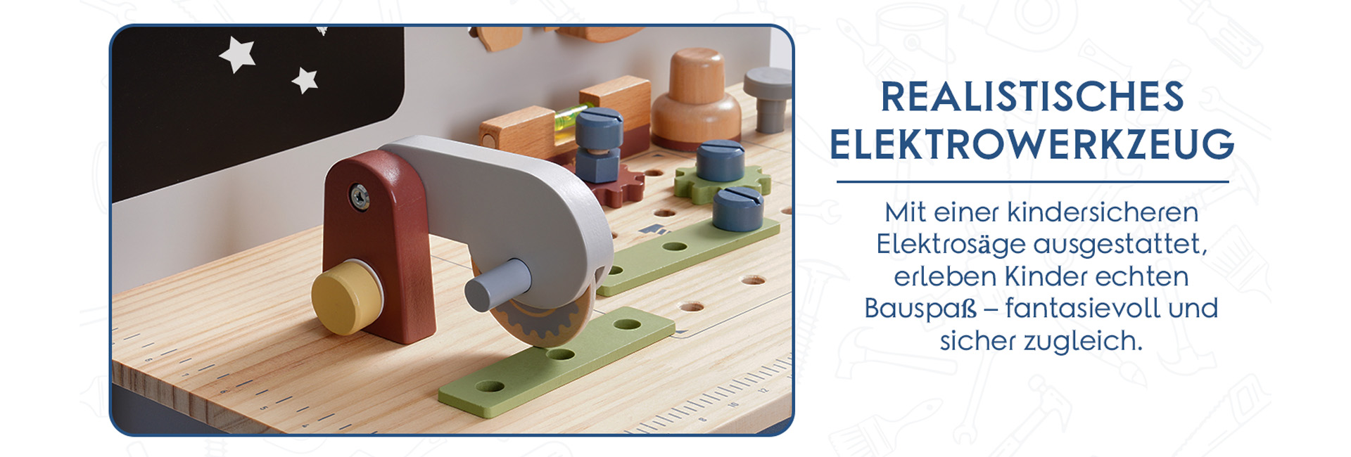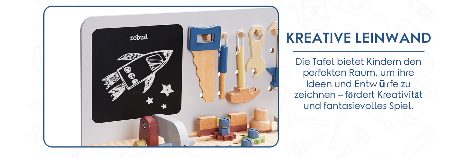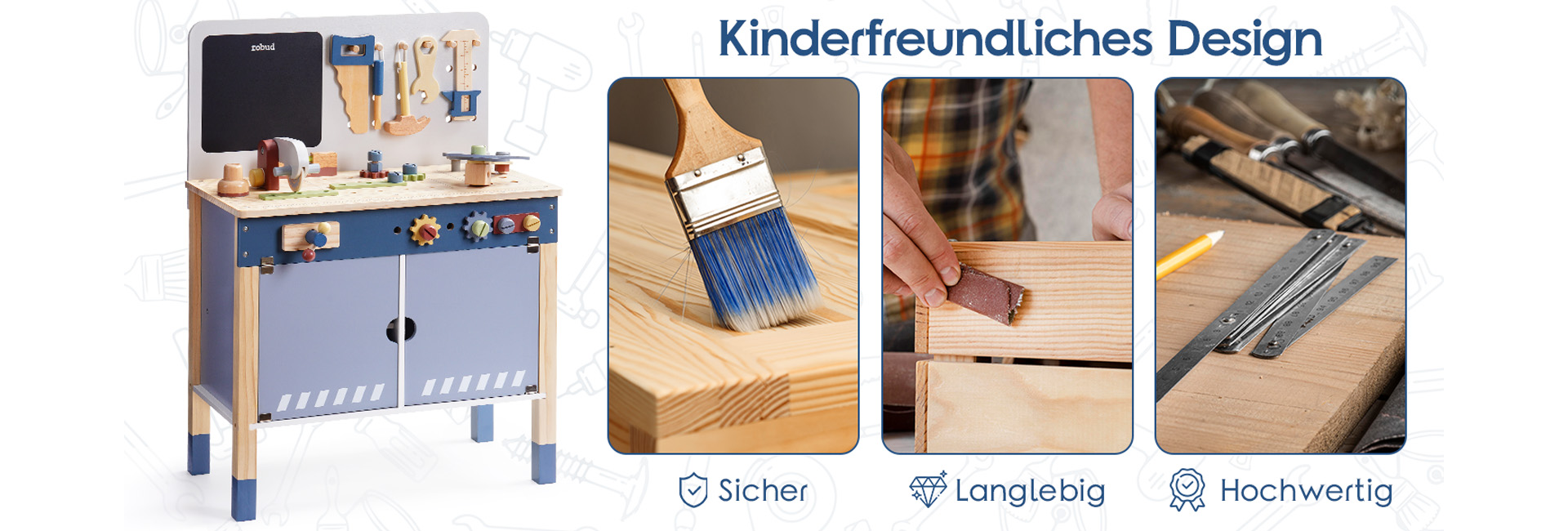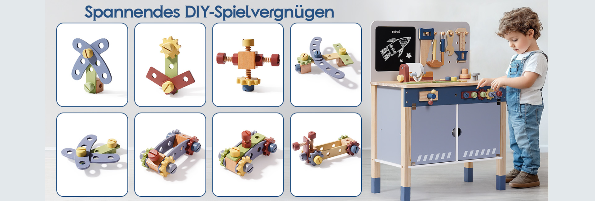 ROBUD Spielzeug-Werkbank aus Holz-nebliges Blau