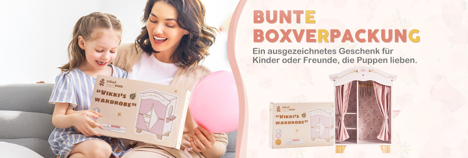 HOCHWERTIG UND LANGLEBIG: ROBUD hat sich der Herstellung von hochwertigen und langlebigen Kinderprodukten verschrieben. Dieser Puppenschrank besteht aus hochwertigem Holz und ungiftiger Farbe, was für ein sicheres Gefühl bei der Nutzung durch Ihre Kinder sorgt. Der Schrank ist in einer exquisiten bunten Box verpackt und ist das perfekte Geschenk für Ihr kleines Kind.